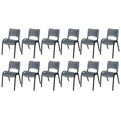 KIT 12 CADEIRA ISO EMPILHAVEL BASE PRETO ESCRITORIO, , - CINZA