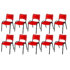 KIT 10 CADEIRA ISO EMPILHAVEL BASE PRETO ESCRITORIO, , - VERMELHO