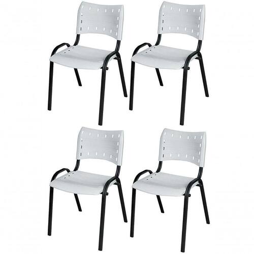 KIT 4 CADEIRA ISO EMPILHAVEL BASE PRETO ESCRITORIO, , - BRANCO