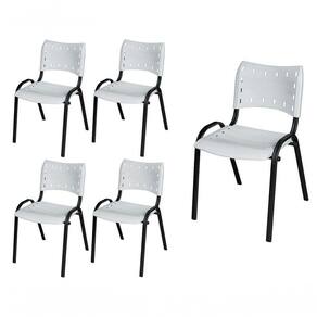 KIT 5 CADEIRA ISO EMPILHAVEL BASE PRETO ESCRITORIO, , - BRANCO