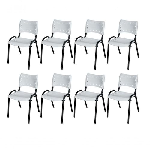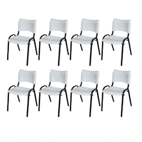 KIT 8 CADEIRA ISO EMPILHAVEL BASE PRETO ESCRITORIO, , - BRANCO