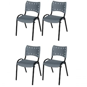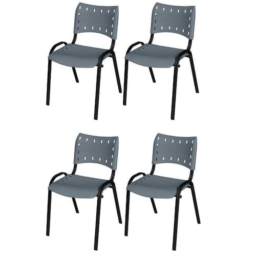 KIT 4 CADEIRA ISO EMPILHAVEL BASE PRETO ESCRITORIO, , - CINZA