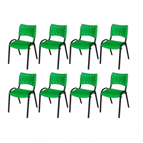 KIT 8 CADEIRA ISO EMPILHAVEL BASE PRETO ESCRITORIO, , - VERDE