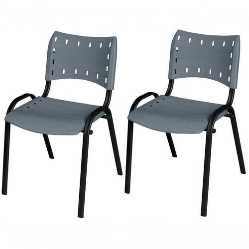 Cadeira Iso Base Preto Igreja, Escola, Escritório - Cinza Kit 2 Peças