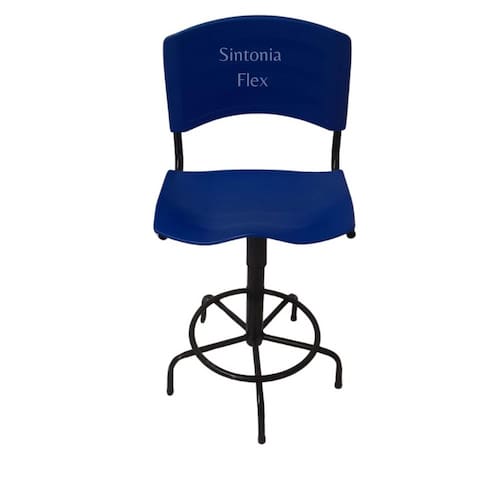 Cadeira iso caixas alta com base de ferro fixa azul pra balcao recpçao mercado Cadeira iso - assento e encosto em polipropileno - regulagem de altura a gás - estrutura em aço com acabamento em pp - pintura eletrostática - aro para apoio dos pés - base de ferro fixa e prolongador de altura Medidas do produto do montado do chão ao assento: Mínima: 53 cm Máxima: 63 cm Marca: Não Informado