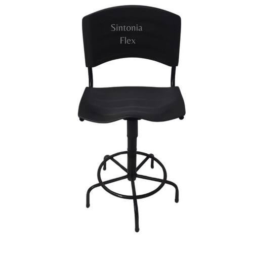 Cadeira iso caixas alta com base de ferro fixa para balcao recepçao mercado preta Cadeira iso - assento e encosto em polipropileno - regulagem de altura a gás - estrutura em aço com acabamento em pp - pintura eletrostática - aro para apoio dos pés - base de ferro fixa e prolongador de altura Medidas do produto do montado do chão ao assento: Mínima: 53 cm Máxima: 63 cm Marca: Sintonia Flex