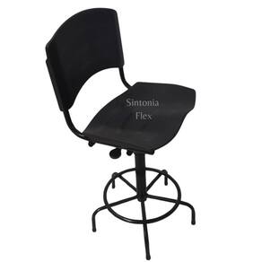 Cadeira iso caixas alta com base de ferro fixa para balcao recepçao mercado preta Cadeira iso - assento e encosto em polipropileno - regulagem de altura a gás - estrutura em aço com acabamento em pp - pintura eletrostática - aro para apoio dos pés - base de ferro fixa e prolongador de altura Medidas do produto do montado do chão ao assento: Mínima: 53 cm Máxima: 63 cm Marca: Sintonia Flex