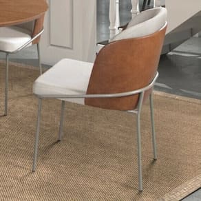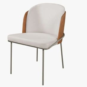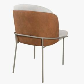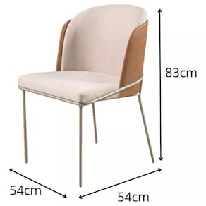 Cadeira Jantar Aurora Linho Bege Couro Caramelo Pés Metal Champanhe