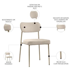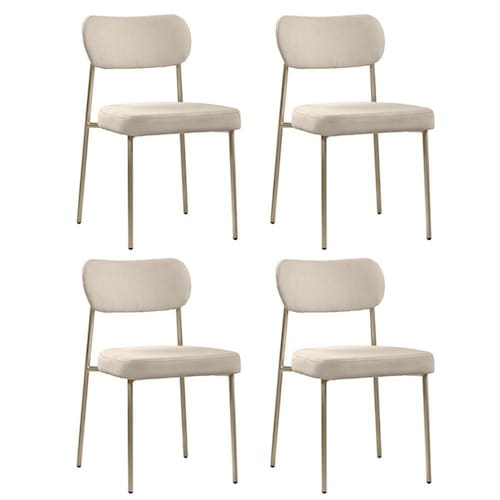 Cadeira Jantar Estofada Pé Metal Rosê Kit 4 Lavy Boucle Bege S08 - Mpozenato