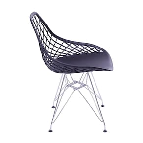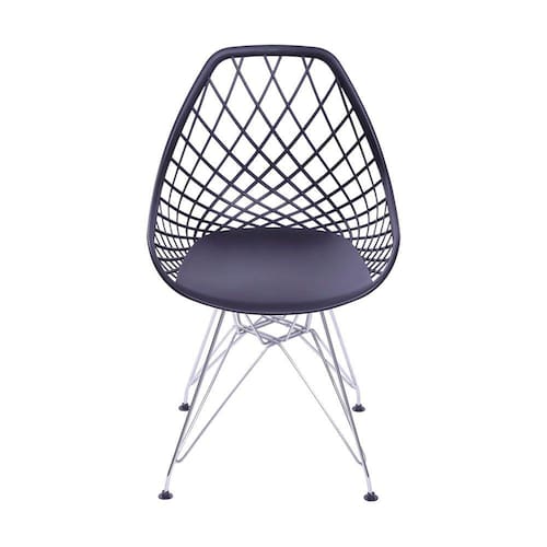 Caraterísticas Principais •Cor: Preta; •Encosto com detalhes Vazados; •Base: Fixa Cromada; •Peso Suportado: 120kg; •Peso do Produto: 4,67kg; •Medidas: Altura: 80cm| Largura: 46cm| Comprimento: 46cm.