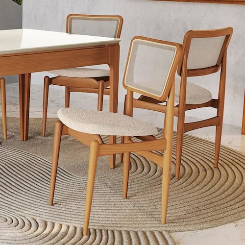 Para quem busca pela união perfeita entre conforto e design, a Cadeira Stela da Linha Sala de Jantar Premium da Kappesberg é a escolha certa. Com um estilo único e muito moderno, ela é produzida em estrutura resistente, de madeira de eucalipto, garantindo mais durabilidade. Entregue montada, ela suporta até 120kg, além de combinar com todas as ocasiões. E com medidas de 88cm de altura, sendo 50cm a altura do assento, 45,5cm de largura e 53cm de profundidade, para ainda mais comodidade, o assento possui um design curvo, acomodando perfeitamente à mesa, e sendo estofado com tecido linho mesclado areia, garante um toque suave e gostoso para uma sala de jantar ainda mais completa. Os destaques ficam para a telinha bege no encosto da cadeira, que além de modernidade, torna a peça ainda mais diferenciada. Os pés, torneados palitos, aliados ao assento flutuante, são outro diferencial que chama atenção na peça e transformam seu espaço e momentos, garantindo ainda mais beleza e sofisticação.