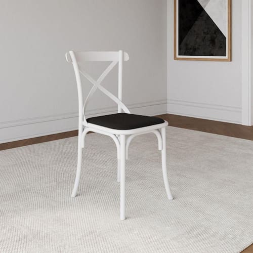 AS IMAGENS SÃO MERAMENTE ILUSTRATIVAS E PODEM SOFRER VARIAÇÕES DE COR E PEQUENOS DETALHES DE ACORDO COM O SEU MONITOR, ILUMINAÇÃO DO AMBIENTE E ATÉ MESMO A SUA PERCEPÇÃO VISUAL.Cadeira Katrina Assento Corano Preto AÃo Branco