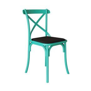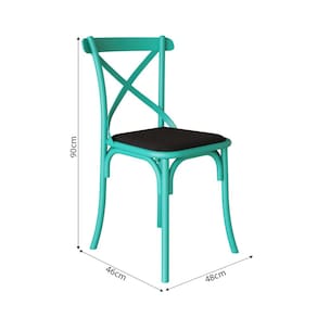 Cadeira Katrina em Aço com Assento Corano Preto para Mesa Cozinha Sala de Jantar-azul Turquesa/preto