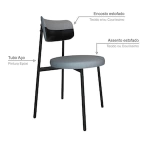 Cadeira Kyta Fixa C/4 Pés 50 X 44,7 X 83,8 Cm. Corriente Cinza Claro/courino Preto Corriente Cinza Claro/courino Preto