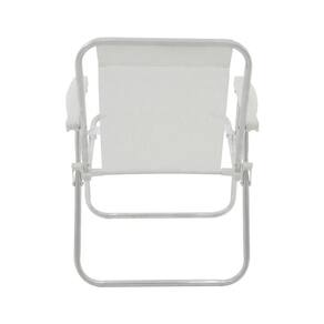 Especificações Técnicas: Peso Suportado da Cadeira: 110 kg Medidas da Cadeira: 54 cm x 53 cm x 71 cm Altura do Assento: 35 cm Estrutura: Alumínio Apoio para os Braços: Sim Dobrável: Sim Cor: Branco Modelo: Alta Material: Poliéster, PVC, Alumínio e Polipropileno