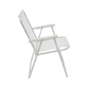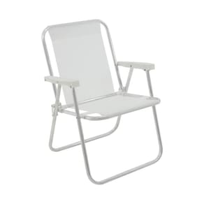 Especificações Técnicas: Peso Suportado da Cadeira: 110 kg Medidas da Cadeira: 54 cm x 53 cm x 71 cm Altura do Assento: 35 cm Estrutura: Alumínio Apoio para os Braços: Sim Dobrável: Sim Cor: Branco Modelo: Alta Material: Poliéster, PVC, Alumínio e Polipropileno