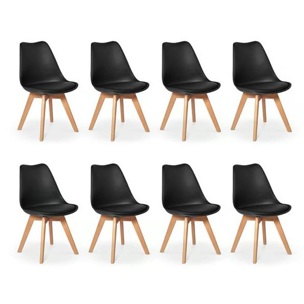 Kit 8 Cadeiras Leda Charles Eames Saarinen Wood Preta