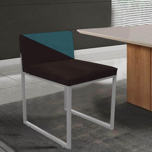 Cadeira Office Lee Duo Sala De Jantar Industrial Ferro Prata Suede Marrom E Azul Turquesa - Ahazzo Móveis Cor Azul Turquesa
