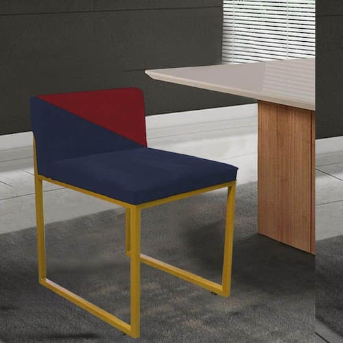 Cadeira Office Lee Duo Sala De Jantar Industrial Ferro Dourado Sintético Preto E Vermelho - Ahazzo Móveis Cor Vermelho