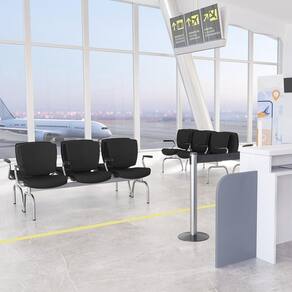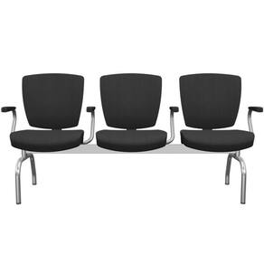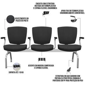Cadeira Longarina 3 Lugares Aeroporto Recepção Cromado Baixa Flexi P03 Poliéster Preto - Lyam