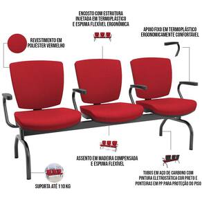 Cadeira longarina, encosto com estrutura injetada em termoplástico.