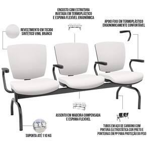 Cadeira longarina, encosto com estrutura injetada em termoplástico.