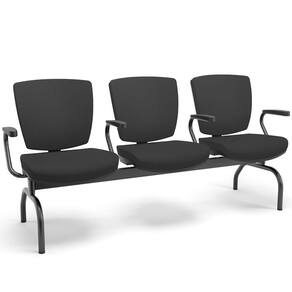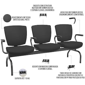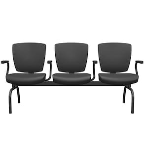 Cadeira Longarina 3 Lugares Aeroporto Recepção Preto Baixa Flexi P03 Vinil Preto - Lyam