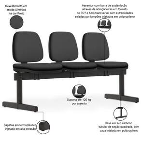 Model: Work | ProductContents: 01 Longarina | ProductWeight: 30 kg | OriginCountry: | Material: Espuma ível de Poliuretano injetado, Tubo Aço Carbono, Polipropileno | Requer montagem: Sim | Formato de venda: Unitário | Modelo: Work | ProductInstructions: Produto para uso em ambiente interno, nao devendo ficar exposto ao sol, calor e umidade excessivos. | SizeDescription: Altura: 88 cm x Largura: 172 cm x Profundidade: 68 cm | ProductLength: 68 cm | Com aro para pés: Não | Tipo de cadeira de escritório: Longarina | ProductWarranty: 90 dias após o do produto | ProductWidth: 172 cm | Com rodas: Não | Color: Preto | OriginState: PR | ColorSimple: Preto | Modelo detalhado: Work 3 Lugares | SupplierSimpleName: Cadeira Longarina 3 Lugares Recepção Sala de Espera Work F02 Sintético Preto - Lyam Decor | Com apoio de braços: Não | ProductHeight: 88 cm | ColorFamily: Preto | Cor: PretoPreto | ColorSupplier: PretoPreto | Materiais do aro para pés: na | Material do estofamento: Espuma ível de Poliuretano injetado