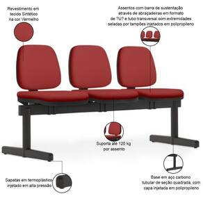 ProductHeight: 88 cm | Requer montagem: Sim | SupplierSimpleName: Cadeira Longarina 3 Lugares Recepção Sala de Espera Work F02 Sintético Vermelho - Lyam Decor | Tipo de cadeira de escritório: Longarina | OriginCountry: | ProductWidth: 172 cm | ColorSupplier: PretoVermelho | SizeDescription: Altura: 88 cm x Largura: 172 cm x Profundidade: 68 cm | Modelo: Work | Model: Work | Com rodas: Não | Material do estofamento: Espuma ível de Poliuretano injetado | OriginState: PR | Cor: PretoVermelho | ProductContents: 01 Longarina | Formato de venda: Unitário | ProductWarranty: 90 dias após o do produto | ProductLength: 68 cm | Modelo detalhado: Work 3 Lugares | Color: Vermelho | Com aro para pés: Não | ColorSimple: Vermelho | ColorFamily: Vermelho | ProductWeight: 30 kg | Material: Espuma ível de Poliuretano injetado, Tubo Aço Carbono, Polipropileno | Com apoio de braços: Não | Materiais do aro para pés: na | ProductInstructions: Produto para uso em ambiente interno, nao devendo ficar exposto ao sol, calor e umidade excessivos.
