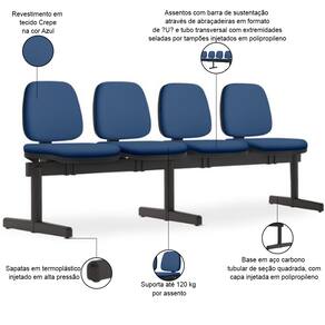 Proporcione um ambiente de espera agradável e profissional com essa longarina 4 lugares, pois é a solução perfeita para otimizar seus espaços e oferecer um design elegante e atemporal. Fabricada com materiais resistentes e duráveis, essa longarina é ideal para compor recepções, salas de espera e postos de trabalho operativos, já que garante longa vida útil e um excelente custo-benefício, além de oferecer o máximo conforto e bem-estar para seus clientes com o assento e encosto estofados.
