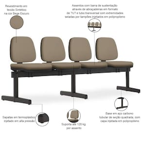 Proporcione um ambiente de espera agradável e profissional com essa longarina 4 lugares, pois é a solução perfeita para otimizar seus espaços e oferecer um design elegante e atemporal. Fabricada com materiais resistentes e duráveis, essa longarina é ideal para compor recepções, salas de espera e postos de trabalho operativos, já que garante longa vida útil e um excelente custo-benefício, além de oferecer o máximo conforto e bem-estar para seus clientes com o assento e encosto estofados.