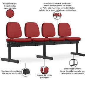 Proporcione um ambiente de espera agradável e profissional com essa longarina 4 lugares, pois é a solução perfeita para otimizar seus espaços e oferecer um design elegante e atemporal. Fabricada com materiais resistentes e duráveis, essa longarina é ideal para compor recepções, salas de espera e postos de trabalho operativos, já que garante longa vida útil e um excelente custo-benefício, além de oferecer o máximo conforto e bem-estar para seus clientes com o assento e encosto estofados.