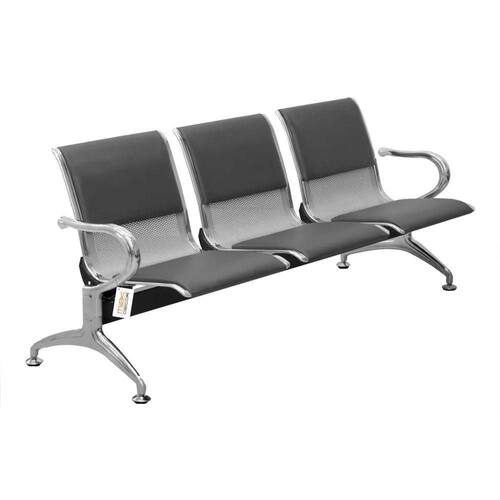 Cadeira tipo longarina com assentos estofados e base fixa;