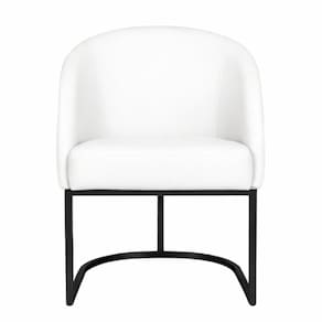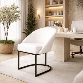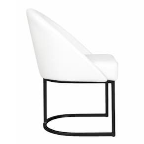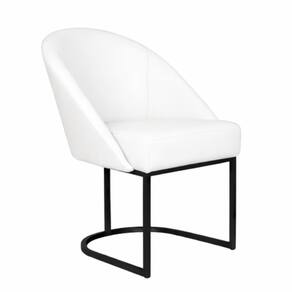 Cadeira Lua Metal Preto Decorativa Estofada em Corino Branco para Sala e Escritório