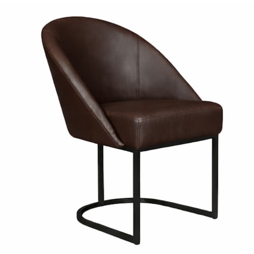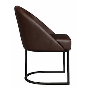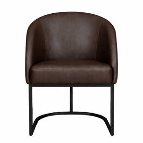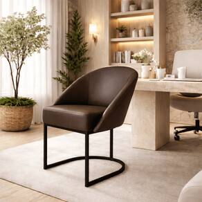Cadeira Lua Metal Preto Decorativa Estofada em Corino Marrom para Sala e Escritório