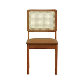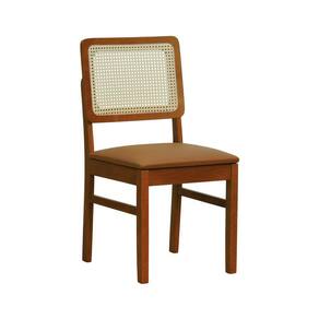 Cadeira Madeira Maciça Lyon Encosto Telinha Natural - Amêndoa Assento Estofado Corano Caramelo -
