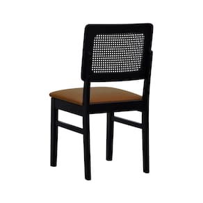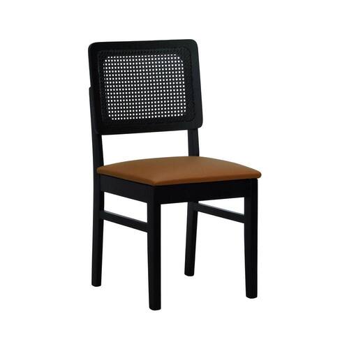 Cadeira Madeira Maciça Lyon Encosto Telinha - Preto Assento Estofado Corano Caramelo -