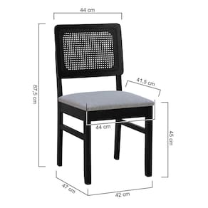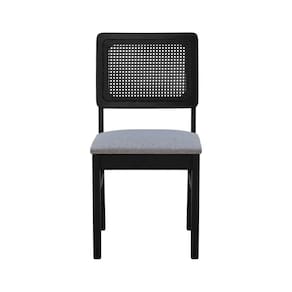 Cadeira Madeira Maciça Lyon Encosto Telinha - Preto Assento Estofado Linho Cinza Mescla Impermeável -