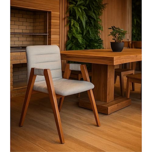 Cadeira em Madeira Maciça com Estofado em Linho Alumínio Júlia – Exclusiva Linho Alumínio 101 -