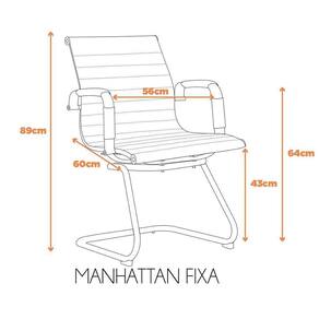 A Cadeira Manhattan Fixa - Fendi é ideal para você que procura modernidade para seu cantinho de trabalho. Ela é toda revestida em couro ecológico com costuras horizontais, também possuindo sua base e detalhes em aço cromado, o que garante resistência, durabilidade e elegância à cadeira.