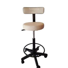 Cadeira mocho caixa alta podologo com aro e base de rodízio para recpçao balcao mercado corano branco Cadeira secretária Mocho podóloga - com regulagem de altura a gás - estrela de ferro com rodízios - madeira