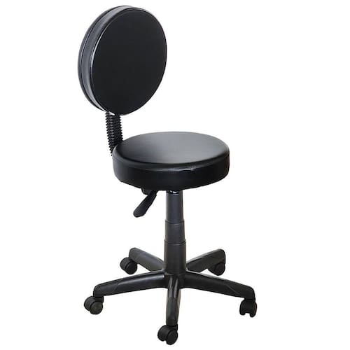 Cadeira Mocho giratório com encosto e regulagem altura Preto Ideal para Consultórios, Clinicas de Estética e Estúdios de tatuagem, além de super confortável, irá decorar seu ambiente. Giratório e com Regulagem de altura por pistão a gás. Estofado em Tecido sintético Estrutura do mocho apenas na cor preta Estofado na cor PretaObs.: Acabamento do Pistão a Gás telescópio pode ou não acompanhar o produto, depende do lote. Marca: For-ty Medidas aproximadas: O diâmetro do assento: 38 centímetros. O diâmetro do encosto: 35 centímetros.Assento espuma injetada 8 cm espessura Encosto espuma 5 cm espessura Este mocho suporta até 120 Kg.Altura do Assento ao final do Encosto: 42 cm.Altura Regulável, sendo que do chão ao assento - mínima 43 cm - máxima 55 cmDimensões do produto montado: 96 máx. E 85 min Alt. X 59 Lar. X 59 Comp. CmDimensões da caixa: 55 Alt. X 56 Lar. X 25 Comp. CmPeso do produto: 8 Kg