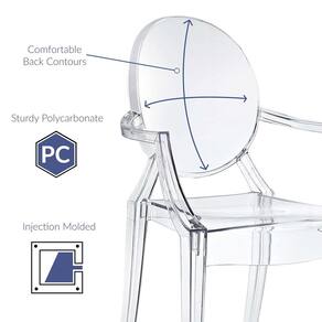 AcrílicoPoltrona moderna empilhável de acrílico para cozinha e sala de jantar Modway Casper em transparente — totalmente montada