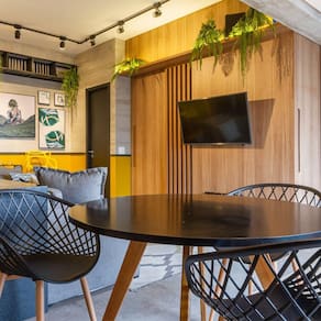 Assento em Polipropileno e Base em Aço com Acabamento Madeira