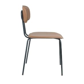 A Cadeira New York - Caramelo tem um estilo industrial, com seus pés em aço preto ela vem trazendo um contraste entre o PU do assento e encosto. O detalhe que possui nas costas, trás um charme a mais na peça.