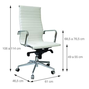 - Cor: Cappuccino - Material/Composição do Assento: Couro Ecológico - Revestimento do Assento: Couro Ecológico - Material/Composição do Encosto: Estrutura metálica - Revestimento do Encosto: Couro Ecológico - Material/Composição do Braço: Aço cromado - Material/Composição da Base: Aço Cromado - Material/Composição do Rodízio: Rodízio Plástico - Material/Composição da Estrutura: Aço - Reclinável: Sim - Regulagem de Altura: Pistão a gás - Mecanismo: Sistema relax - Altura do Assento ao Piso: 45 cm x 54 cm (min x máx.). - Dimensões do Encosto: 60 cm x 42 cm (A x L) - Dimensões do Assento: 49 cm x 45 cm (L x P) - Dimensões do Braço: 35 cm x 3,5 cm (C x L) - Altura do Braço: 23 cm - Peso Suportado: 120 kg - Dimensões da Base: 66 cm x 66 cm - Peso líquido aproximado do produto (kg): 15,0 kg - Marca: MGM Flex - Embalagem: Caixa de Papelão - Conteúdo da Embalagem: 01 Cadeira com acessórios para montagem e manual de instruções - Dimensões da Embalagem: 48 cm x 25 cm x 52 cm (C x L x A) - Garantia do Fornecedor: Três (03) meses contra defeitos de fabricação