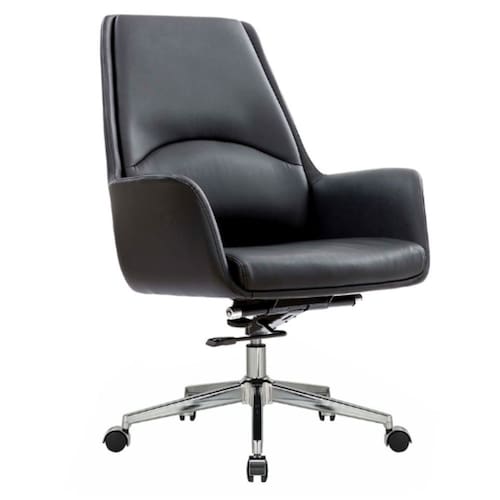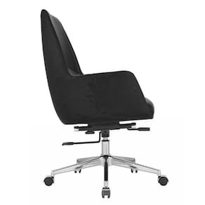 Nossa cadeira é estofada e revestida em poliuretano, possui base estrela em aço cromado e rodízios em PU. Além de tudo, ela é giratória com ajuste de altura (pistão classe 3) e possui função relax, tudo pensado no seu conforto pro dia a dia!