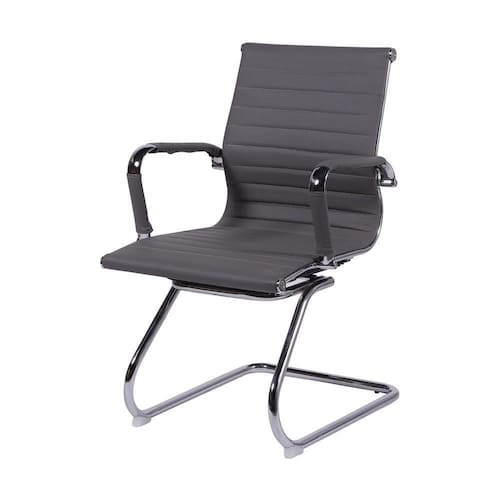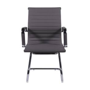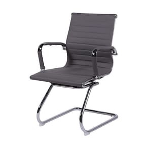 Cadeira Office Esteirinha Em Pu Cinza Base Fixa Cromada