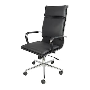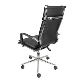 Cadeira Office Soft Alta Preto- com encosto acolchoado para um melhor conforto, estrutura em aço cromado e revestida em PU, possui regulagem de altura do assento com pistão á gás e sistema relax, possui base giratória em aço cromado com rodízios.