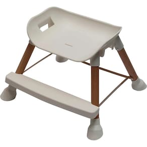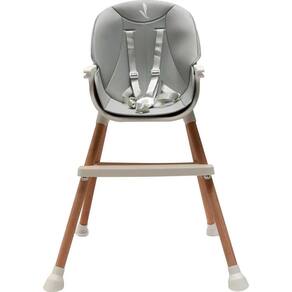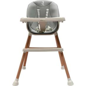 Numa primeira fase, a cadeira é utilizada como cadeira alta com tabuleiro amovível e arnês de 5 pontos ou como reforço, permitindo a colocação do seu assento em qualquer cadeira. Pode ser utilizada como cadeira baixa, para almoçar ou tomar leite enquanto assiste TV. Transformável em banco alto ou baixo retirando o assento e retirando o seu ajustador. Com o seu estofado ecológico, suporta até 15Kg e ainda possui apoio para os pés e tem sua bandeja ajustável e removível.